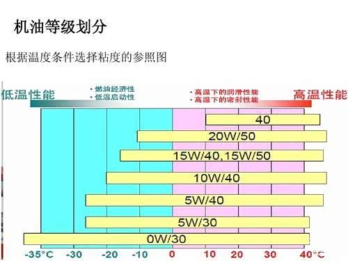 机油的高温运动粘度指的是机油粘度在100摄氏度下的运动粘度,跟气温没有半毛钱关系,汽车冷却系统会控制机油的温度,使得机油控制在恒定的温度区间,所以外界气温的高低对机油的高温运动粘度基本没有影响,不管是冬天还是夏天,对W后边的数字没有影响,只与发动机的设计有关。而W前的数字代表的是机油低温启动能力,数字越小低温启动能力越好,对发动机的保护更好。我们可以用W前的数字减去35,得到的数字就是这款机油的低温启动能力,比如0W,0-35=-35,就说明这款机油可以抵抗零下35度,5W,5-35=-30,说明这款机油能抵抗零下30摄氏度的低温启动。