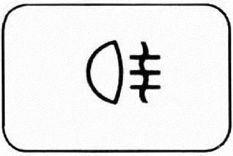 前雾灯图形样式:左边是三个斜线,由一条弯曲的线穿过,右边是半椭圆形。