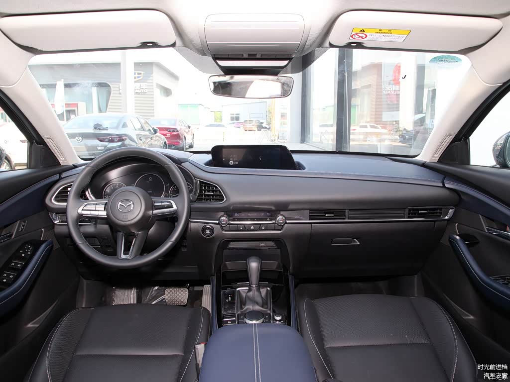 内饰部分,CX30这款车的内饰整体布局与昂克赛拉如出一辙,熟悉的设计风格让内饰显得辨识度非常高。为了与家族车型区别开,该车的中控台拥有更明显的倾斜角度,配合双色拼接和非对称式的液晶屏,让内饰看起来更加有设计感。中控台上配备的7英寸显示屏,支持苹果Carplay、百度Carlife功能,能满足大多数用户的操控要求。