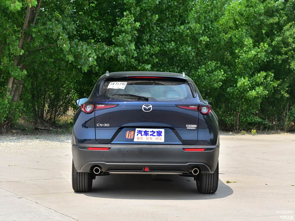 马自达CX-30采用了家族新的“二代魂动”设计语言,盾形格栅与两侧的大灯进一步融合,鹰眼式的灯组造型炯炯有神。还采用了时下流行的跨界车的风格设计。此外,双边共两出式排气布局也带来一定的运动感。马自达CX30的车身长宽高分别是4395×1797×1545mm,轴距2653mm。由于马自达车型的车身是按黄金比例设计的,所以这款CX30的车身就显得很协调,配合曲面设计的侧面车身,加上大红色车漆的配合,让这款小型SUV显得时尚气息更浓郁。为了抑制胎噪的产生,该车将轮胎换上了普利司通泰然者系列,规格是215/55 R18。