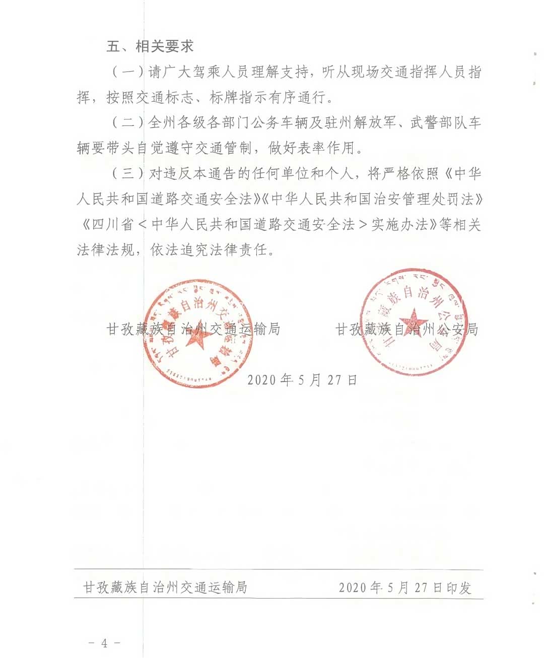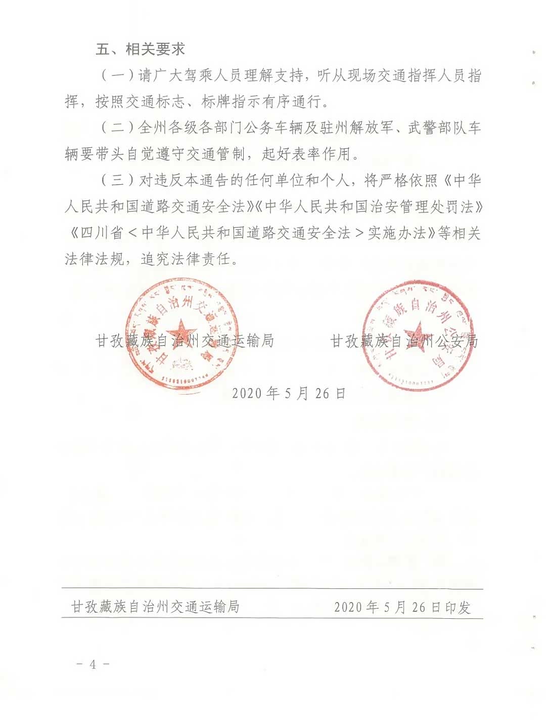 一、管制时间: 2020年5月20日至2020年10月31日。