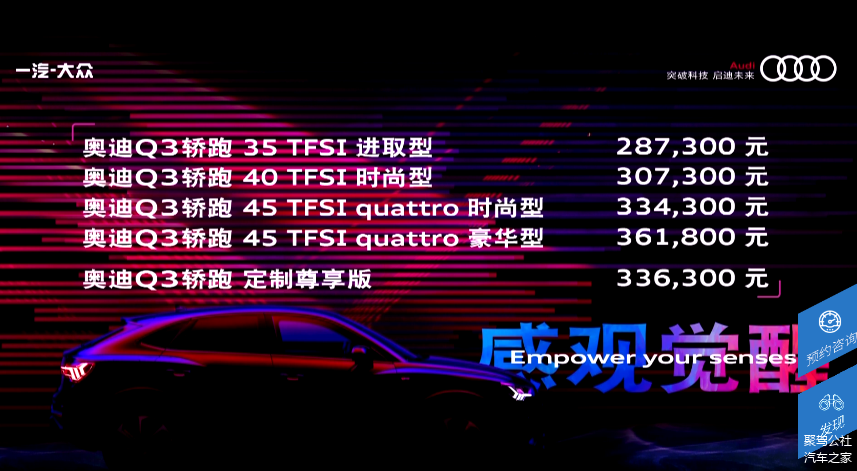 像这样一台轿跑SUV奥迪Q3 Sportback的售价是否会让你满意呢?