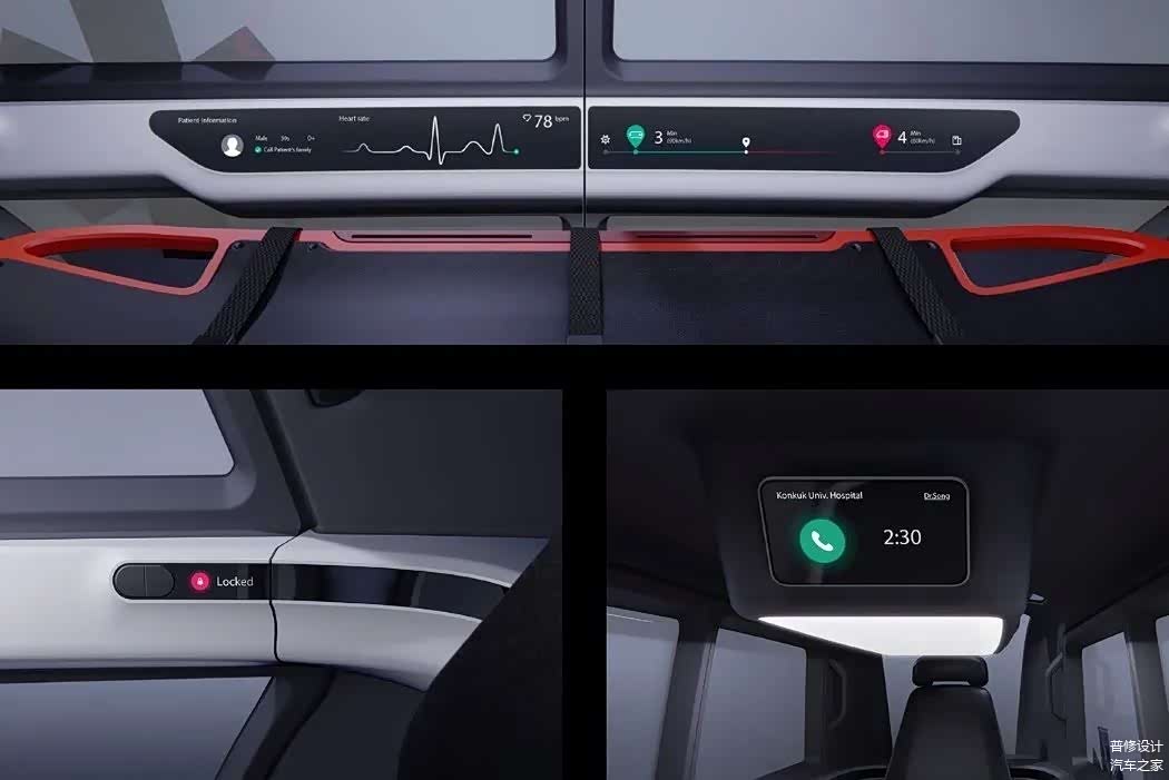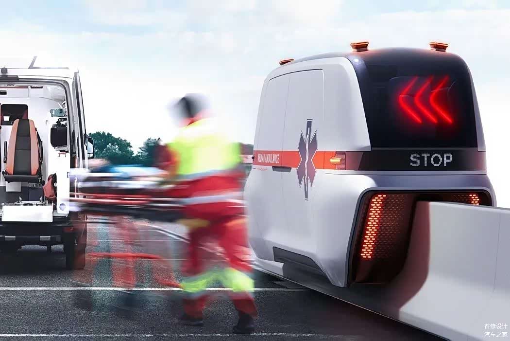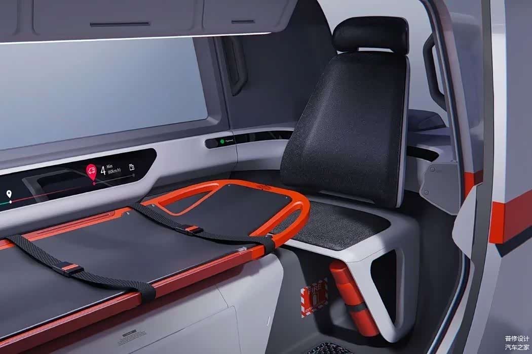 它的两侧均设有滑动门,为司机和助手提供座位,还有一个区域供担架支撑患者。当事故发生时,它将信标发送到距离高速公路最近的中间AMB站。收到求救信号时,AMB找到患者的位置来接他们,之后,把受害者到最近的医院,以帮助节省时间。