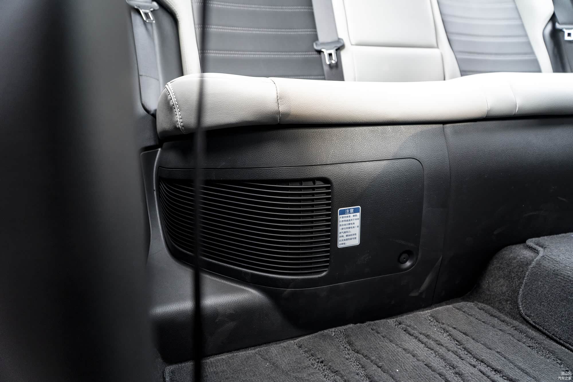 由于将电池放到了后排座椅下方,因此双擎版的后排座垫比汽油版会薄一些。此外大家在选购脚垫时一定注意不要遮挡座椅侧面的电池散热孔。