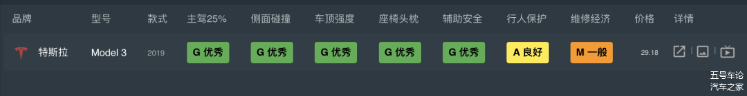 稍微美中不足,就是Model 3在行人保护一环没拿到优秀。它并不符合本文全优的设定,但整体依旧能算优秀。