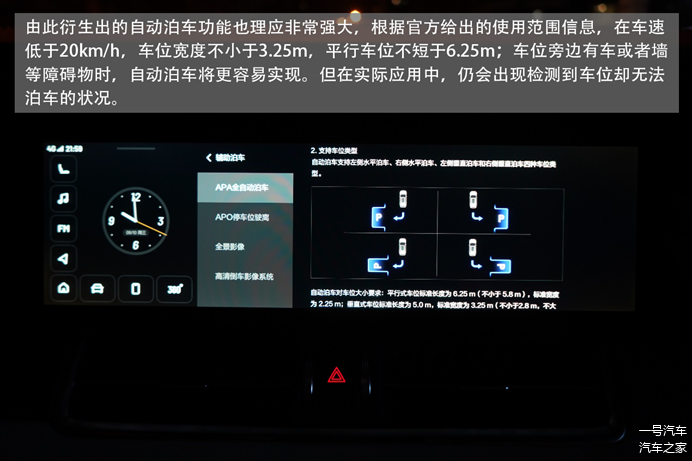 车辆具备电子说明书功能,但大多功能还是以文字图片来显示,不够直观。常用界面或操作,比如多功能方向盘,仪表盘,自动泊车等,配有特定的教学视频,但是拍摄的场景和形式不够统一,有优化的空间。