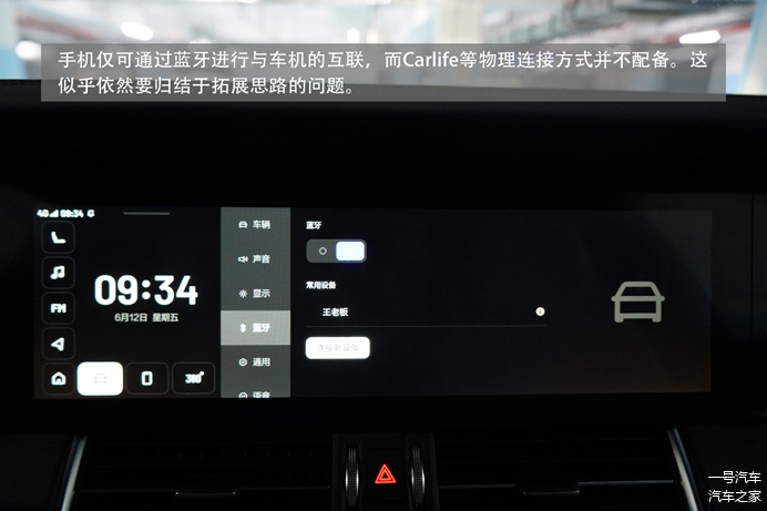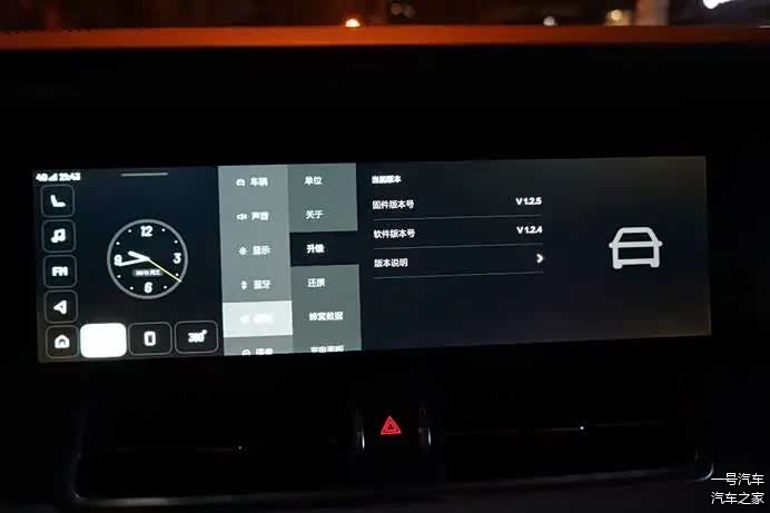 具体显示方面,中控屏的主菜单,主要功能按钮按L型排列(像座椅的符号)。左侧是L型排列的功能按钮,右侧是大卡片式,显示主要功能,操作方式为划动切换。