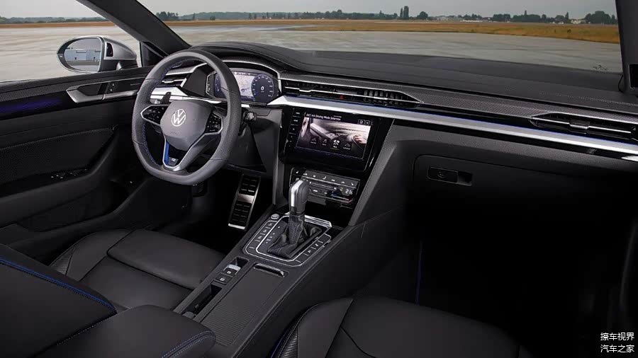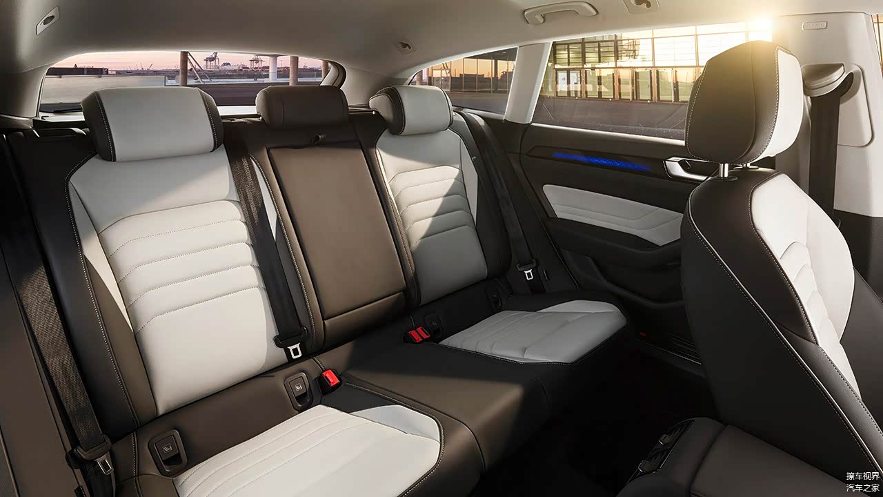 内饰方面相比现款的“翻版迈腾”,变化实属不小。首先取消贯穿式空调出风口,而是改为内置的镀铬饰条进行贯穿处理。同时10.25英寸液晶仪表盘+9.2英寸中控触屏+触控空调控制也是大众车型流行元素,新样式的三辐方向盘也更具美感。值得一提的是,车舱各处内置了氛围灯,连门板上的装饰板里也有隐藏的发光元件。