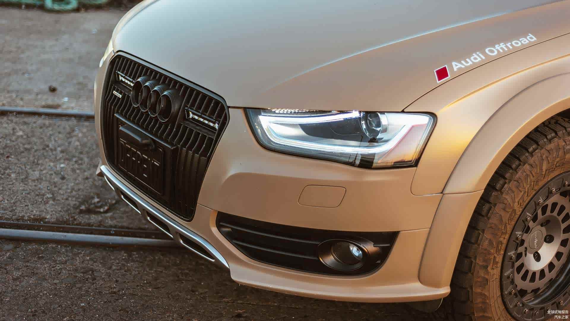 从整体上来看,这辆经过全面越野化改装的奥迪A4 Allroad显然已经不是一辆传统跨界旅行车的样子了。车身的配色采用更具有军用化特质的土黄色哑光涂装,黑色的越野防护套件对于这辆车而言已经不再重要,所以轮眉、侧裙、前后保险杠下护板均采用了车身同体色的设计。