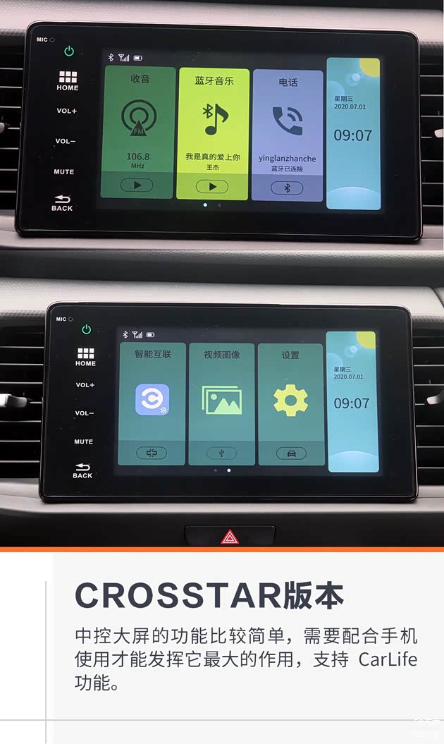 两个版本的内饰设计上一致,只是配置会有所区别。本次我们试驾的两款车型均是顶配,潮跑Pro(SPORT)版本相对来说配置会低一些,比潮越Max(CROSSTAR)版本少了中控大屏、蓝牙电话以及魔术座椅。
