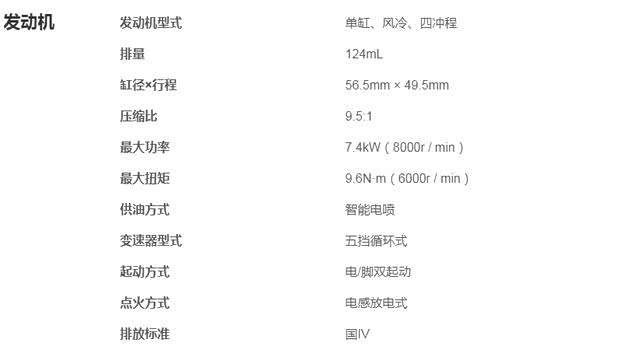 豪爵DH125E发动机实际排量为124CC,采用单缸风冷四冲程设计,并且匹配了电喷系统符合国四排放标准。最大功率为7.4千瓦,最大扭矩为9.6牛米。5挡循环挡变速箱,配有14.6L大容量油箱,结合排量考虑续航怎么都在500km以上。所以山区群众拥有一辆这样的街车,可以说省去了太多麻烦。