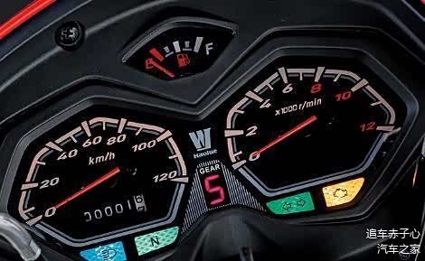 豪爵铃木DH125E作为一款实用街车,外观方面可谓是非常吸睛的,主要是因为这个车身线条、喷涂配色、视觉感触等方面,实在是街车中的极致水准。别的不说我们看车身长宽高尺寸分别为2040*740*1105mm,轴距尺寸为1285mm,你看看这个比例是不是属于大气、黄金分割的那么个意思?而且豪爵铃木DH125E的这个车头,卤素头灯看上去非常有设计感,有点像飞翼式,又有点牛魔头的那个感觉。仪表盘更是采用了三独立指针式仪表,各司其职一目了然,一点也不混淆。
