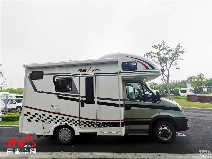 车头原车少有的银灰色,高级的白色玻璃钢厢体外观,搭配瑞弗房车家族式的高档黑+红车身贴花,使整车外观看起来典雅而又不失简约时尚。