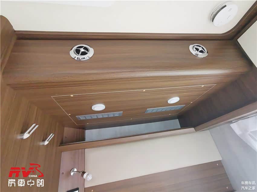 床头部分做了细致的软包,防撞的同时提供更好的舒适性;床头的上方还配有形成空调出风口,在行车的状态下,前后空调出风口就能为车内提供舒适的生活温度。