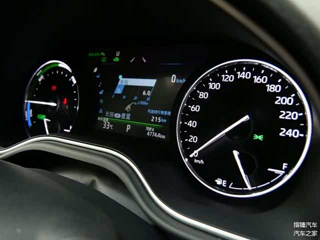 丰田全新的方向盘手感亲肤细腻,只是按键的手感有些绵软,如果清脆一点会更好。仪表盘则依旧是「分段式」全液晶设计,行车电脑的操作界面字体有些偏小,好在使用逻辑并不复杂。