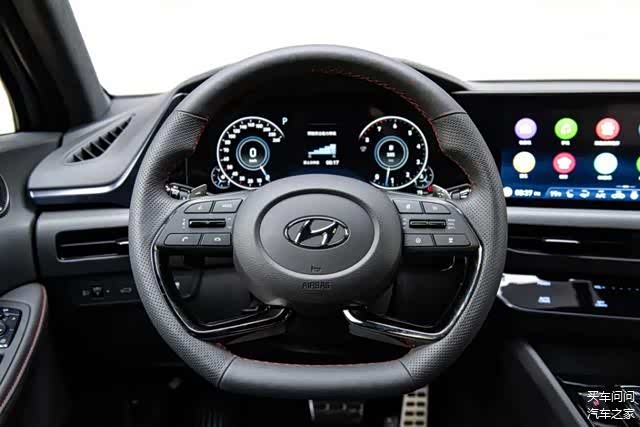 在新款索纳塔车内几乎可以找到当下所有时髦的设计与配置。简约扁平化的内饰风格符合当下年轻消费者的主流审美,不同车型还拥有黑灰和深红两种不同的内饰配色方案。配置部分它则依然厚道,双12.3英寸全液晶仪表盘在同级车型种算是少见的高级货,在中配以上车型中你就可以看到JBL音响系统、方向盘加热、64色炫彩氛围灯、后排多功能中央扶手等越级装备。另外,在智能互联部分新车也有升级,扩大了语音识别控制范围,实现了场景化语音指令识别联动及命令控制关联等功能。