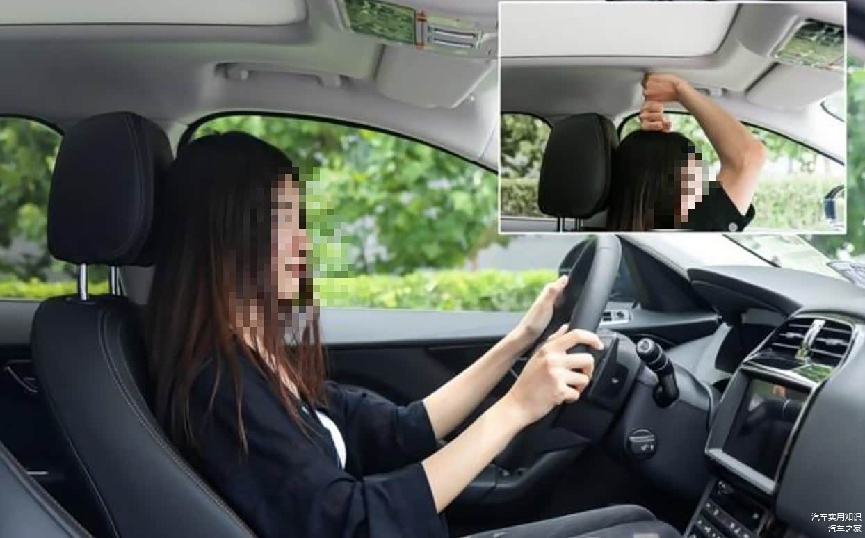 保证在打开遮阳板后,水平向下方向的视线不受遮阳板影响;确保在头部正常抬起时,头部与车顶间留有至少2指距离。