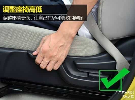1、座椅高低调节:保证眼睛的水平视线位于挡风玻璃中间位置偏上一点的位置。