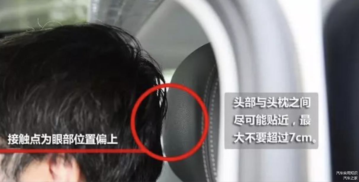 头枕的调节同样重要,如果头枕高度过高,导致后脑勺只能接触头枕下沿部位,头枕的缓冲作用也几乎不起作用了。