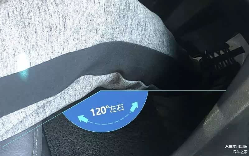 此时,进行座椅前后距离的调整,在完全踩踏踏板的情况下,驾驶员的膝盖应有一定的弯曲,大约120度为宜。