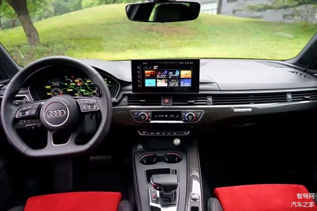 来到车内全新奥迪A4L的内饰基本保留了现款车型的样貌,但中控台材质使用的仿碳纤维材质以及10.1英寸可触摸的中控大屏确实让人眼前一亮。