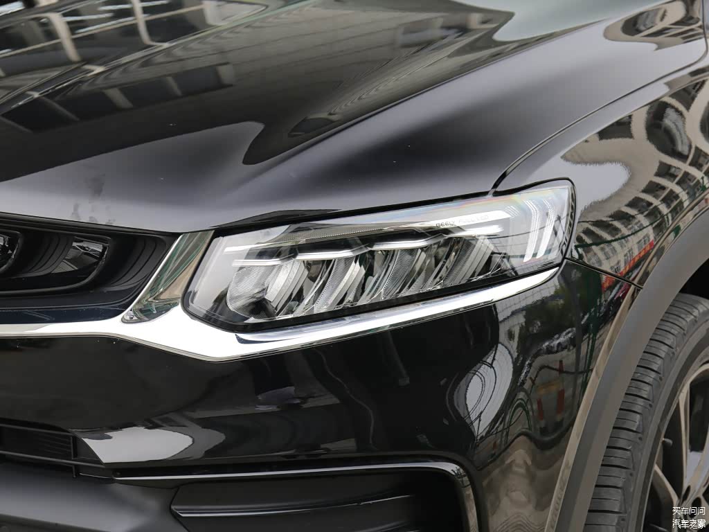 吉利星越的车头延续了品牌旗下车型家族式的涟漪式进气格栅,和CS85 COUPE类似,星越同样以横向布局为主,但运动感更为突出一些,其格栅内部还加入了高亮细节以提升质感。同时由于星越的保险杠设计得十分宽大,星越上、下格栅的面积都显得很克制,令整个车头看起来重心较高,多了一份力量感和敦实感。