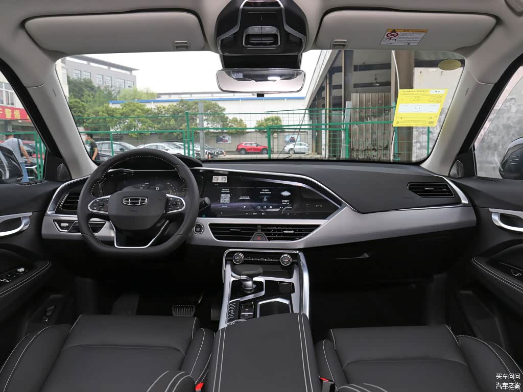 吉利星越则使用了时下流行的偏向驾驶员一侧的中控设计,主打简洁风格,车内同样采用了大面积的软包覆盖,在材质做工方面有着不错的档次感,亮黑的饰板设计也使得整个中控和仪表形成了连为一体的视觉效果,进一步提升了车内的科幻氛围。