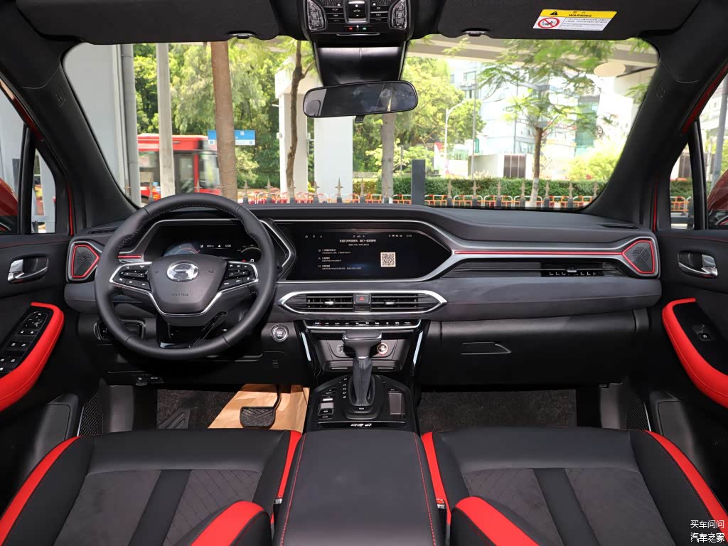 来到内饰方面,传祺GS4 COUPE整体沿用了GS4的布局形式,双12.3英寸液晶大屏、全触控面板以及钢琴式中控按键承担起了内饰的科技感。并且传祺GS4 COUPE在座舱布局上十分注重运动氛围的营造,不管是红黑的配色方案、中控台、门板等部位大量的Alcantara材质还是一体式赛车风格座椅,都与外观展现出的运动感实现了内外匹配。