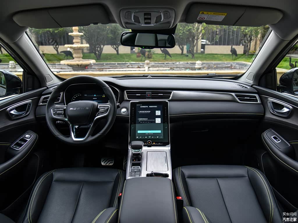 在四款车型中,荣威RX5 PLUS是唯一采用了中控屏竖向布局的车型,中控大屏的尺寸达到了夸张的 14.1寸,加上金属拉丝面板、钢琴烤漆等材料的搭配,有着强烈的科技感。
