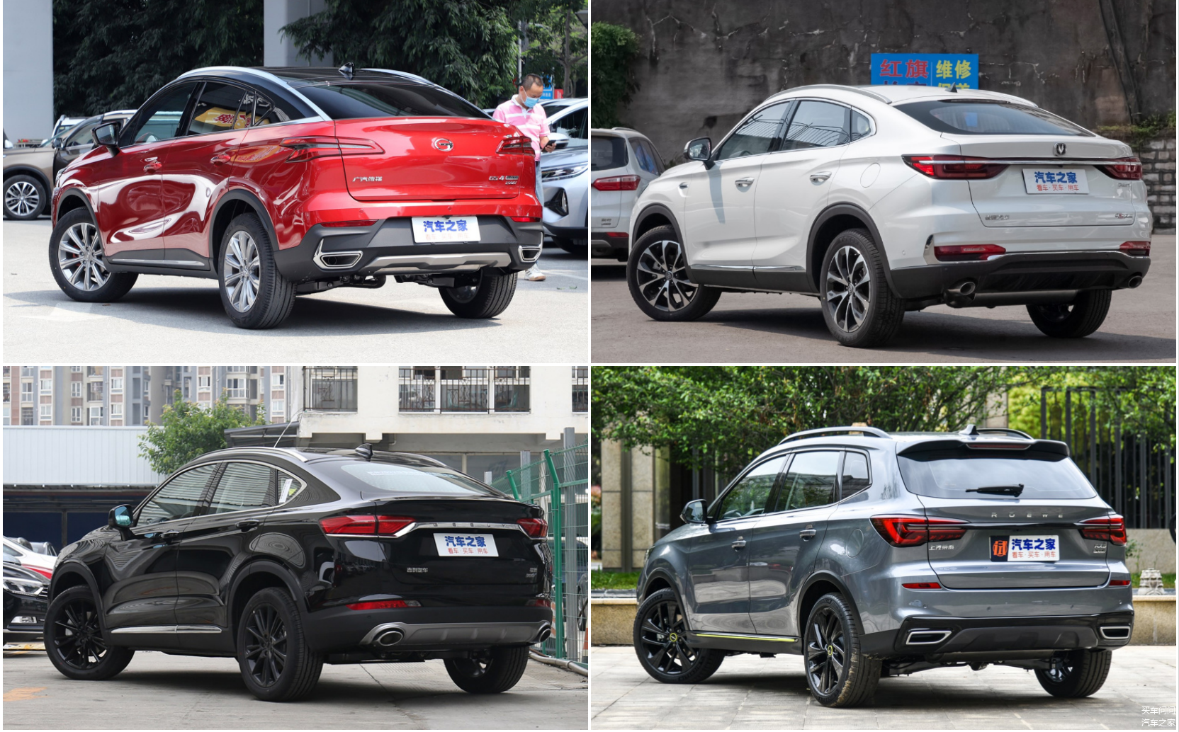 四款车型通过车头传递出的车辆气质可谓各有特色,但到了侧面的车身形态上,彼此之间开始出现气质上的区分。其中荣威RX5 PLUS保持着传统的SUV四平八稳的车身形态,而传祺GS4 COUPE、CS85 COUPE和星越都采用了溜背特性明显的造型手法,这三款轿跑SUV在最富辨识度的B柱往后的设计上,均利用流畅、优雅的车顶线条向车尾位置倾斜并最终收拢,比如传祺GS4 COUPE实现了0.295的低风阻系数,不仅姿态优美,还带来了出色的行车稳定性和低油耗。可以说三款轿跑SUV在溜背造型的完成度和表现力上不输豪华品牌的同类型产品,也能在同价位的SUV中率先吸引到年轻消费者的眼球。