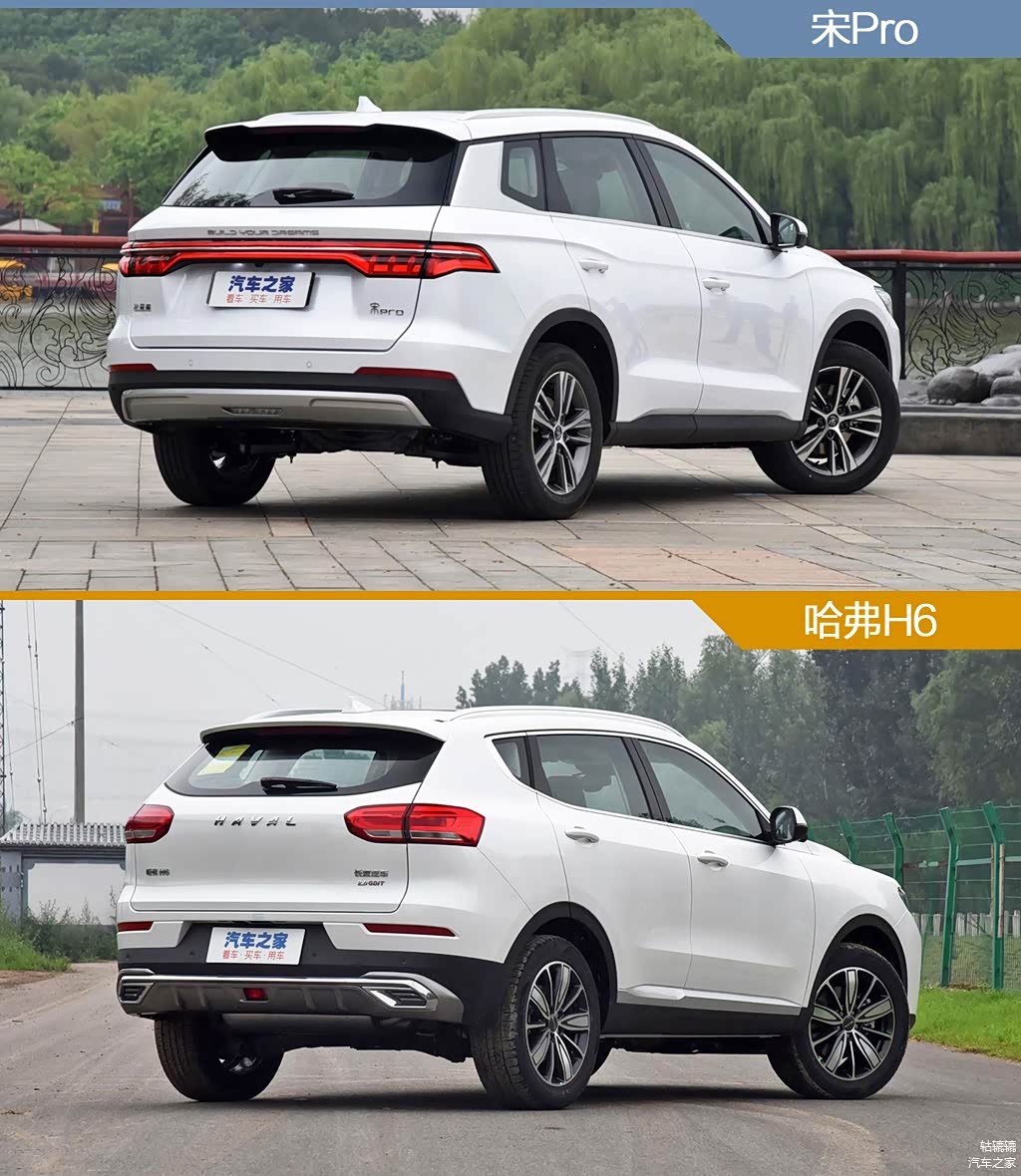 宋Pro燃油版全系搭载1.5T发动机,售价区间为8.98-11.98万元。第二代哈弗H6有1.5T和2.0T两种动力,其中作为主力的1.5T车型售价区间为9.80-13.60万元。出于公平原则,我们选取了动力和价格相近的宋Pro 1.5T自动尊贵型和第二代哈弗H6 1.5GDIT自动冠军版进行对比。由于哈弗H6 1.5T实拍图质量不佳,因此文中使用2.0T图片代替,除尾标数字外两种动力在外观、内饰部分没有明显区别。