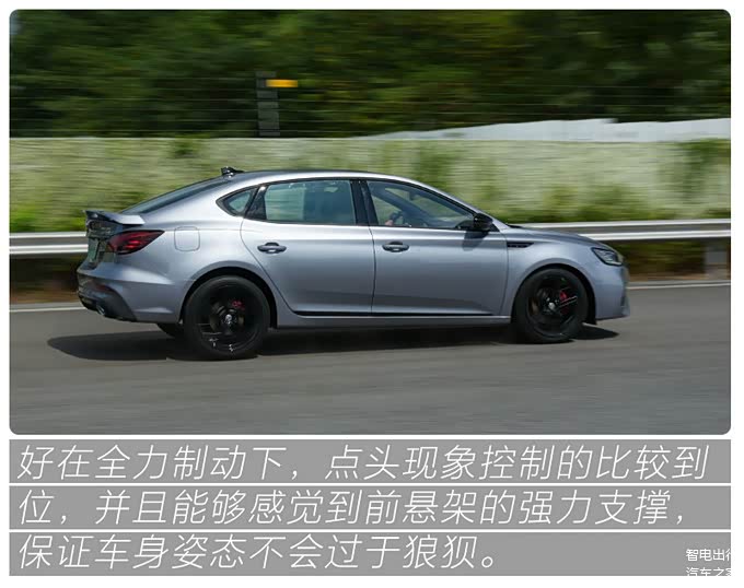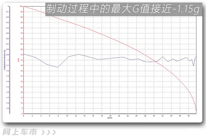 虽然第三代MG6 PHEV的卡钳喷有象征着性能的红色涂装,但整个制动过程中的最大G值接近-1.15g,实际测试的100-0km/h的制动成绩为39.8m,这样的成绩对于一台紧凑型轿车来说并不算出色。