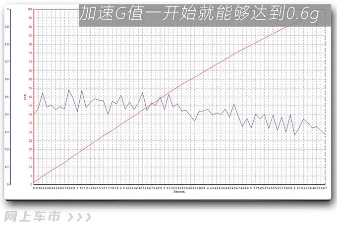 经过我们的实际测试也能够看出第三代MG6 PHEV加速G值一开始就能够达到0.6g,并且整个动力输出状态保持非常平稳,最终新车能够实现0-100km/h加速6.7s的成绩,破百距离为105m。