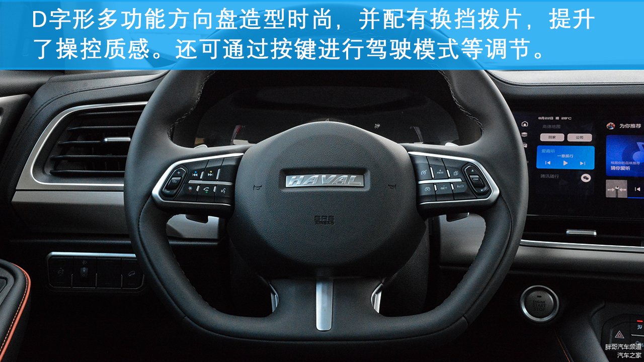 内饰依旧采用了家族设计语言,航空式环抱座舱设计不仅科技感十足,还提升了驾驶员在操作上的便捷性。哈弗F7x在内饰的配色上也有所升级,采用了多种撞色彩条星环环绕,非常的年轻时尚,在星云式设计的挡杆和中控屏周围等部分采用了大量钢琴烤漆设计,更加提升了高级感。中控部分的12吋液晶屏幕,显示清晰。操作起来也比20款车型更加流畅。方向盘提供的换挡拨片再次提升了操控性,加上略带跑车质感的液晶仪表设计,更符合F7x的运动定位。内饰特别增加的氛围灯,也为驾乘者的晚间用车提供了更好的氛围基调。座椅不仅拥有多种配色,用料还很厚实,座垫和靠背都有着不错的舒适性,但头枕略向前突,对乘坐的舒适性会有所影响。