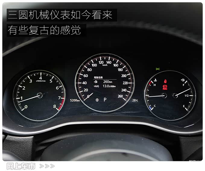 为什么我在开头说一定要把这款车真正用起来,才能发现它的“恰到好处”,因为马自达这种闷骚品牌,它的优点直接看上去无法发现,例如那个尺寸很小而且无法触摸操作的中控屏,你会发现使用中央扶手前的旋转拨盘操作更为便捷;另外还有纯机械的仪表盘,简单直接一目了然,可是在液晶时代,能够坚守机械质感的品牌已经不多了。