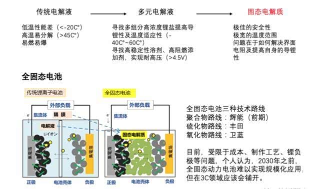 从常规电解质到多元高压电解质,到最终的全固态电解质。