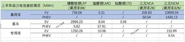其中,三元电池装机占比超过了84%,磷酸铁锂电池全部用于纯电动乘用车。