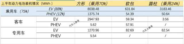 4. 上半年18GWh装机量中,乘用车占比75%。