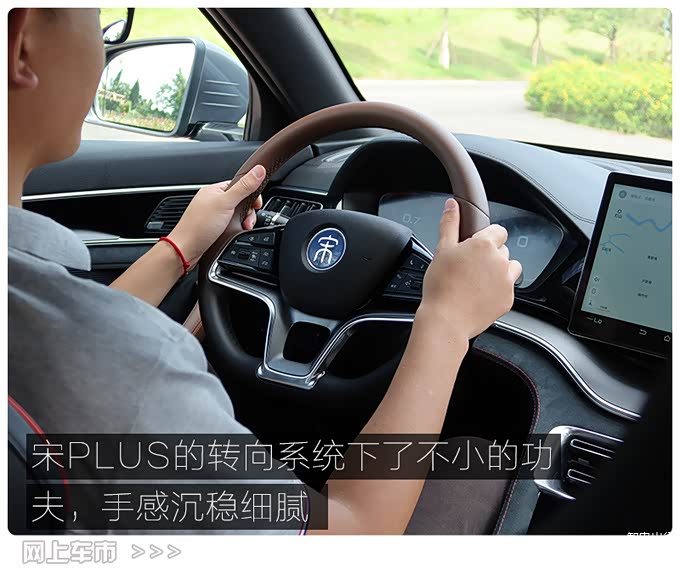 宋PLUS底盘部分硬件结构上和宋Pro有比较大的差异,实际的驾驶感受,整体感稍逊于宋Pro。尤其是在行驶过一些坑洼路面或是减速带时,能够感知到一些多余的振动,山路弯道行驶时车身姿态的控制表现一般。但是结合宋PLUS车型的产品定位,操控并不是它的强项,大部分时间还是舒舒服服在城市中使用,这样的悬架设定也无可厚非。