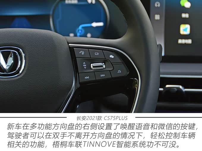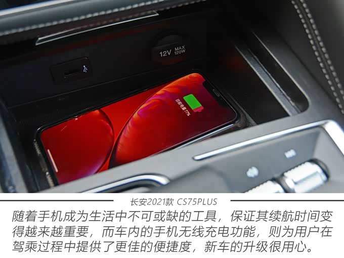 新车依然搭载了与腾讯合作开发的梧桐车联TINNOVE智能系统,具备了良好的人车交互表现和智联系统内丰富的功能,堪称驾车出行的好助手。为了能够更好的满足用户需求,2021款CS75PLUS新增了车载微信和手机无线充电功能,这两项锦上添花的配置,对于行车安全性和便利性,起到了很大的作用。此外,长安汽车最先进的“PM0.1级”全新复合抗菌杀毒高效过滤器,以及360°全景影像功能,也会搭载在更多的车型版本上,可以看出,2021款 CS75PLUS在洞察消费潮流方面,是如此的用心。