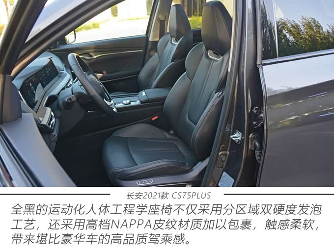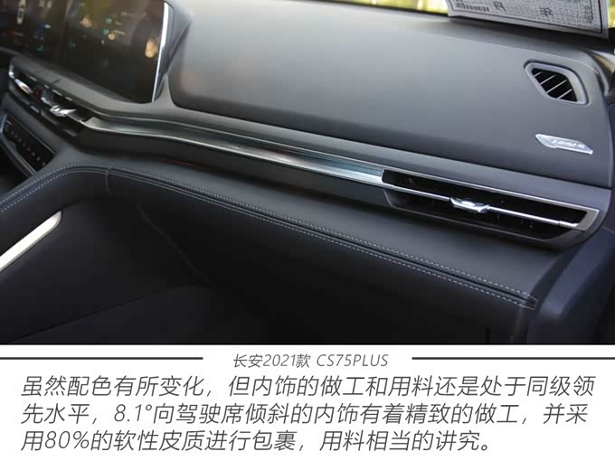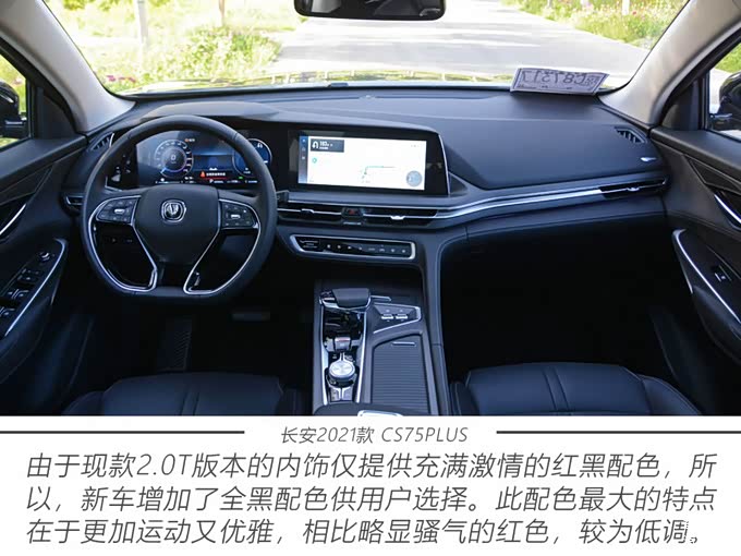 以驾驶者为中心的内饰布局,结合彰显科技前卫的三联屏设计,是CS75PLUS引以为豪之处。为了将内饰设计变得更有吸引力,CS75PLUS大面积采用了软性皮革包裹,无论是选材还是做工都很考究,视觉和触觉效果一绝,尤其是座椅和中控台上的缝合让人非常满意。新车不但保留了红+黑的双色内饰,而且还提供更具运动感的全黑内饰,加上主打运动风格的平底方向盘,整体的座舱质感得到了升华。