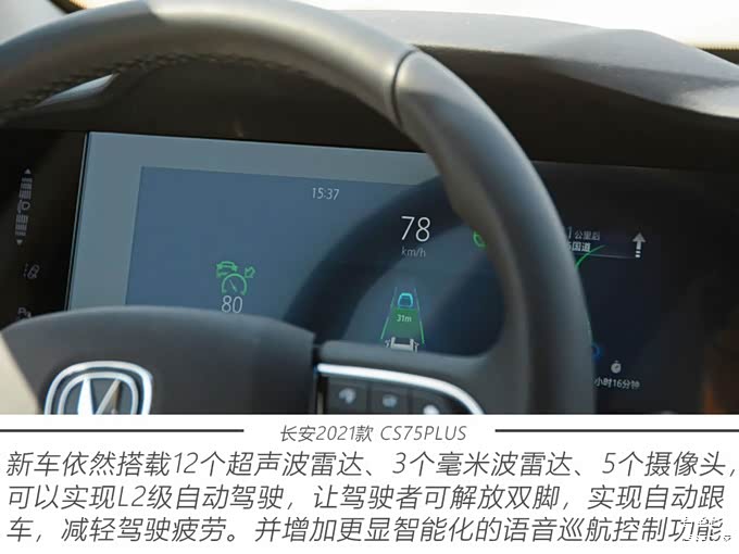 从去年上市以来,CS75PLUS在行驶质感方面便取得了不错的口碑,这在新车上得到了传承。首先是转向手感会根据驾驶模式的不同而变化,方向盘的虚位很小,指向性非常不错;然后就是兼顾舒适和操控的底盘调校,让人开起来感觉底盘非常规整且韧性十足,特别是在砂石路面行驶时,没有松散的感觉;最后便是整车的NVH水平,由于车厢的密封性较好,高速行驶时风噪和胎噪能够得到有效隔绝,而且2021款 CS75PLUS还针对发动机噪音进行了完善,即使在高转速状态下,传到座舱内的轰鸣声也得到了很好的抑制,在同级别中处于较高水准。
