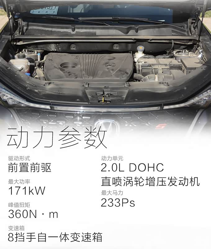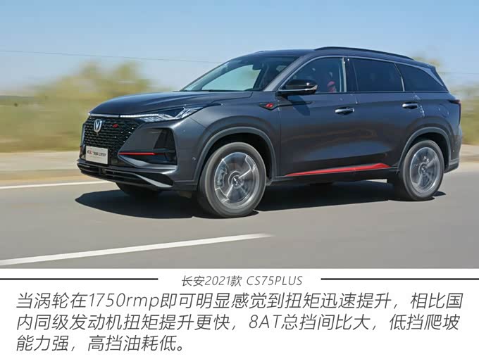 随着年轻消费者更注重速度与激情,光有出类拔萃外观和内饰设计是不够的。为此,2021款 CS75PLUS延续的2.0TGDI+爱信8AT动力系统,能够满足他们对于充沛动力性能的需求。这套比肩3.5L自然吸气发动机的动力,采用涡轮增压、缸内直喷技术,升功率提升50%以上,可以迸发出171kW最大功率,360N·m最大扭矩,匹配来自爱信的8AT变速器,具有响应急速,多挡位切换平顺舒适等优势,满足激情驾驭的要求。