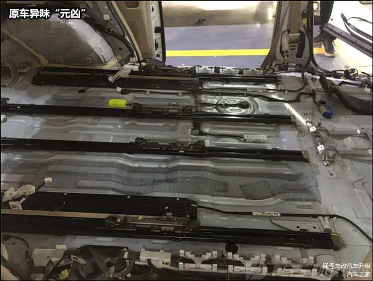 车辆检查后,技术师傅二话不说开始了内饰拆卸工序,底盘、后备箱、防火墙是埃尔法车内噪音的重灾区,也是原车沥青隔音重点的布局位置!技师师傅将内饰、座椅、地毯等拆卸下来后,下一步就要开始防火墙的拆卸了,拆卸防火墙对于许多改装店来说都是望而却步的项目,因为里面线束繁多,拆装工程庞大,技术含量极高,所以很多改装店面不敢轻易入手,但对于我们锋程车改专业汽车改装十年老店来说那就是小菜一碟啦!