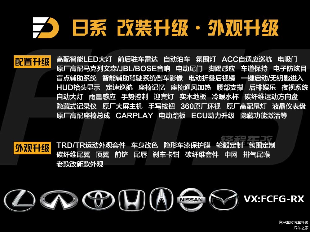 锋程车改专业汽车改装全国直营连锁店——主营业务: