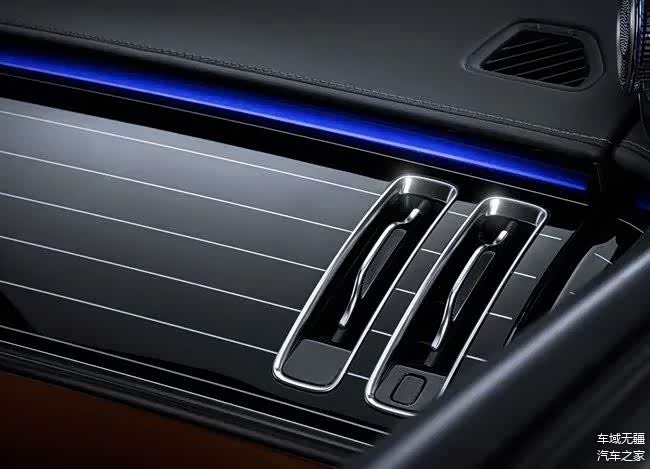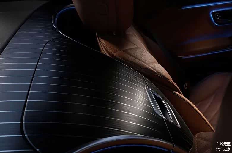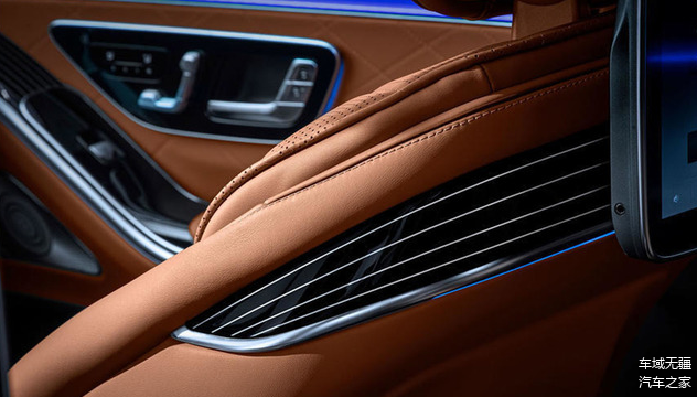 同时,全新奔驰S级也取消了内饰中经典的圆形空调出风口设计,改为四个并列的方形出风口,位于中央屏幕上方。在屏幕两侧,是大面积的贯穿式面板,以开孔胡桃木和铝制饰件加以点缀,配合独特的光纤组合氛围灯效果更佳。同时,在面板左右两侧,也各有两个垂直的出风口。