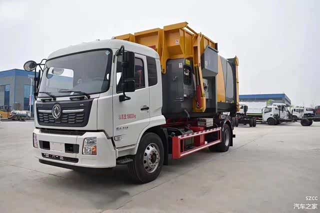 该车最主要的优点就是可以车配多斗,一辆车就可以维持数个垃圾收集站的运转,效率高,且箱体为密封式设计,不会造成二次污染。