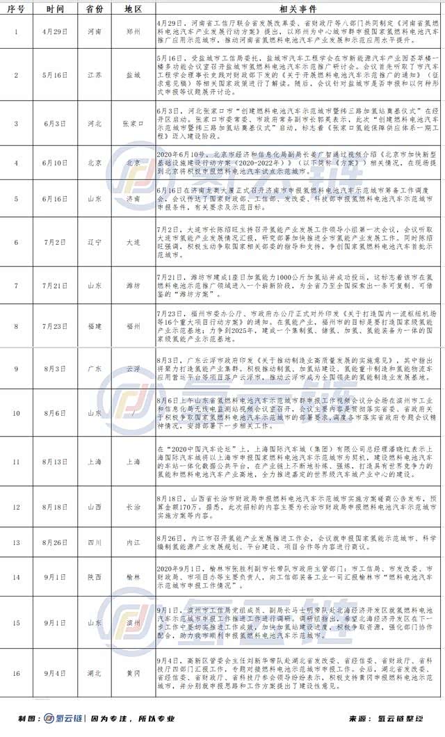表1列举了4.23后表态参与燃料电池汽车示范城市申报的地区。可以看到,将近一半的地区面临着与黄冈相似的困难。城市群联合申报必将成为一个主要的趋势。