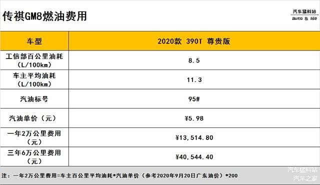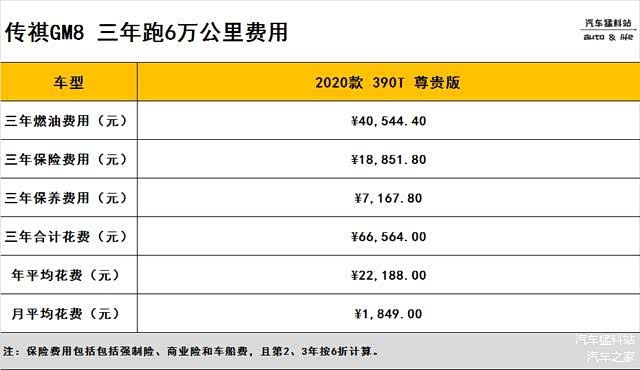 通过上述计算,我们就能得到传祺GM8的养车成本,具体如下: