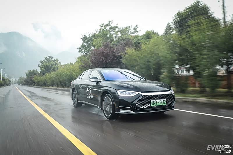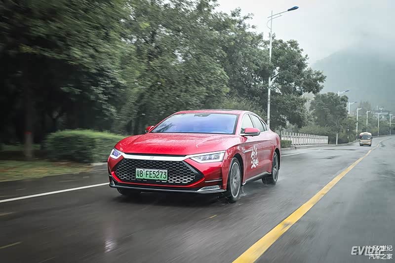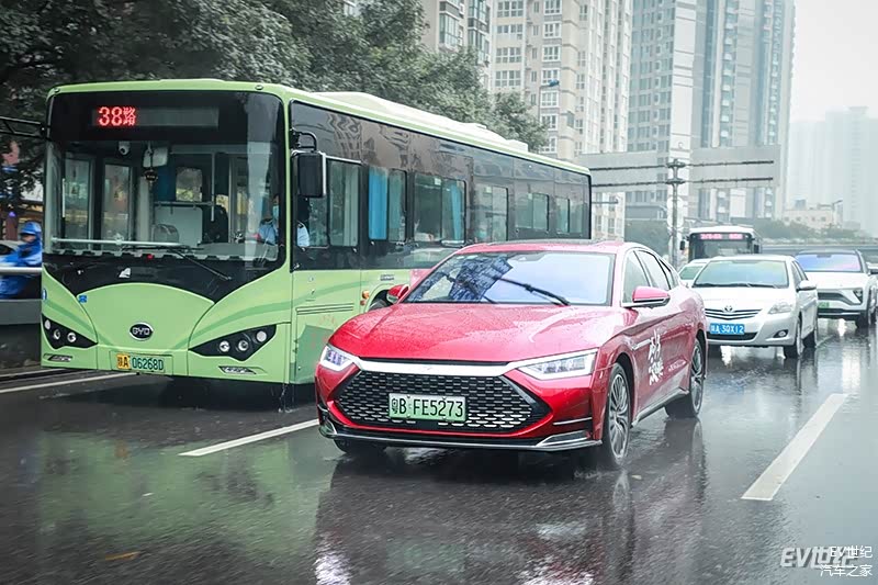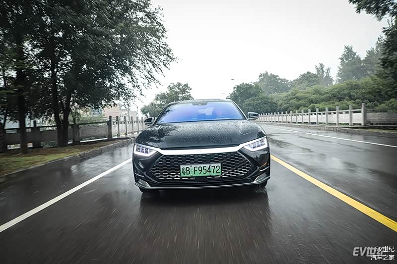 正式的测试从早高峰拥堵的城市路段开始。满电的汉DM能提供81公里的NEDC综合工况纯电续驶里程。因此,对于日常城市通勤代步而言,选择EV纯电驱动,无疑是最经济环保的行驶模式。